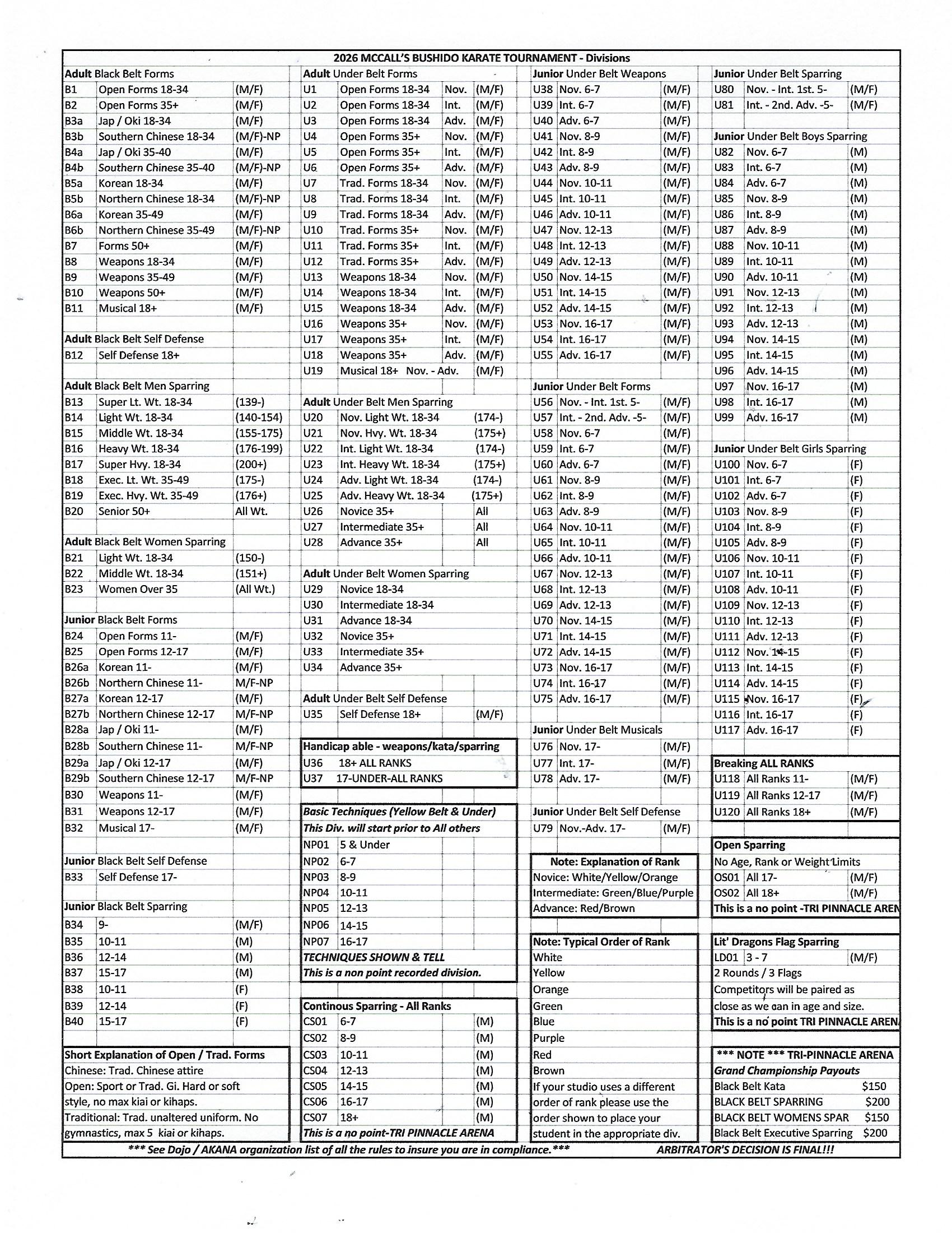 2026 MCCALL’S BUSHIDO KARATE TOURNAMENT